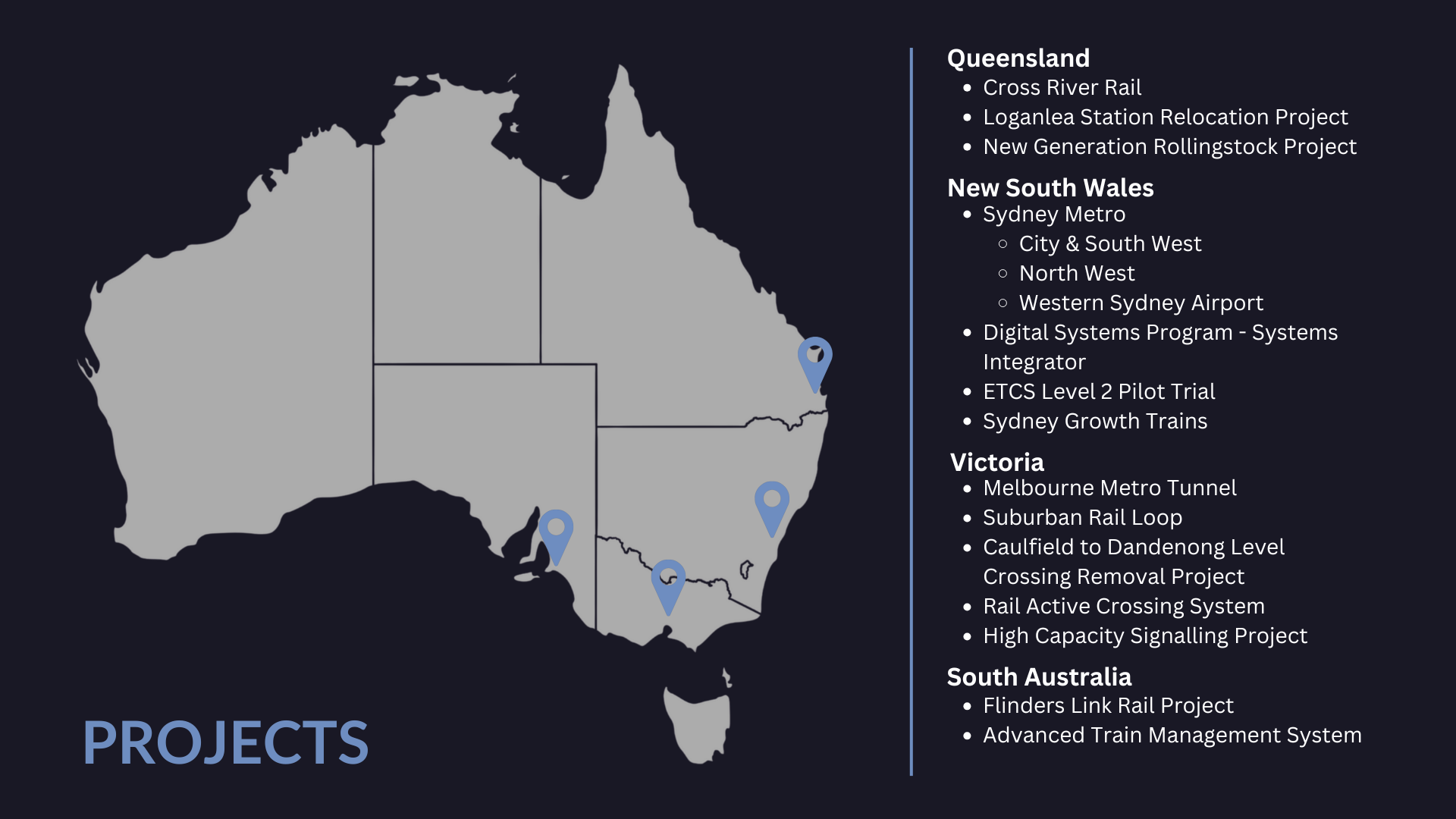 Acmena currently has a staff of over 30 with teams of specialists engaged with major infrastructure projects across the country. As an ISO 9001: 2015-certified company, we cater to clients from a wide variety of highly regulated industries, ranging from multi-national construction and infrastructure contractors and government agencies to rail operators and local start-up technology companies.