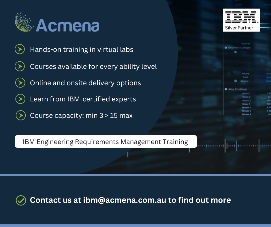 Acmena is an IBM Silver Business Partner, specialising in highly regulated industries. We are the preferred supplier for systems engineering tools and services in the Australian transport industry