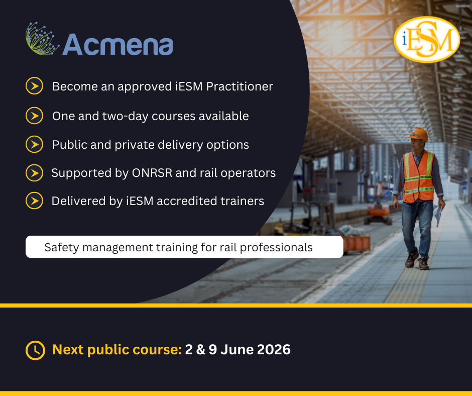 Acmena has trained over 500 rail professionals and has delivered iESM courses to a range of organisations, including contractors, rail operators and government agencies across Australia over the past eight years.